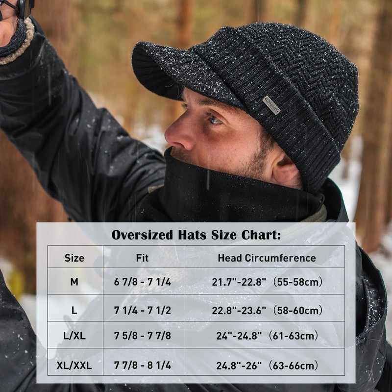 - Peaked visor beanie: the long visor bill is great for outdoor activities. It would keep sun&snow&rain out of the eyes or glasses. So we recommend this bill caps to guys who live in cold winter areas with plenty of snow or rain.