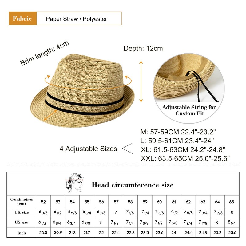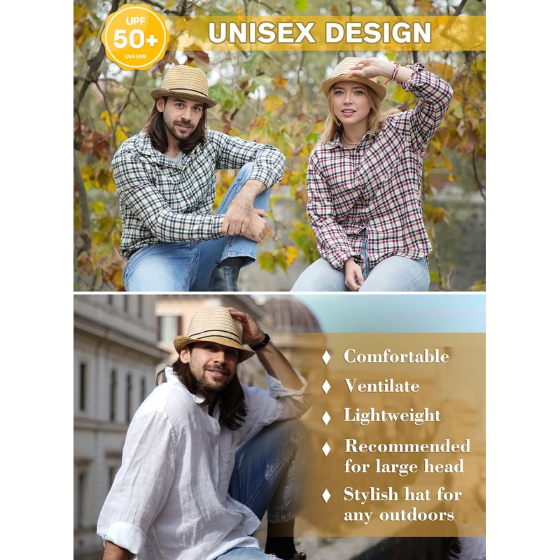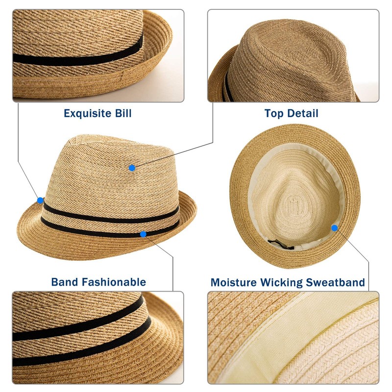 Comhats Straw Hat Men's Fedora Trilby Hat Panama Hat Beach Sun Hat Handmade Short Brim, 92569_Beige