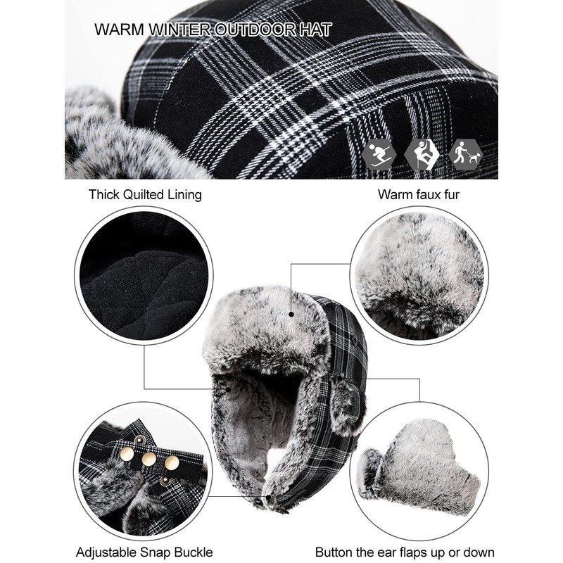 • TRENDY & UNISEX - this plaid pattern earflaps trapper hat, available in different color&size options, has a more stylish look for both guys and ladies, easy to pair with any winter gears in your closet.