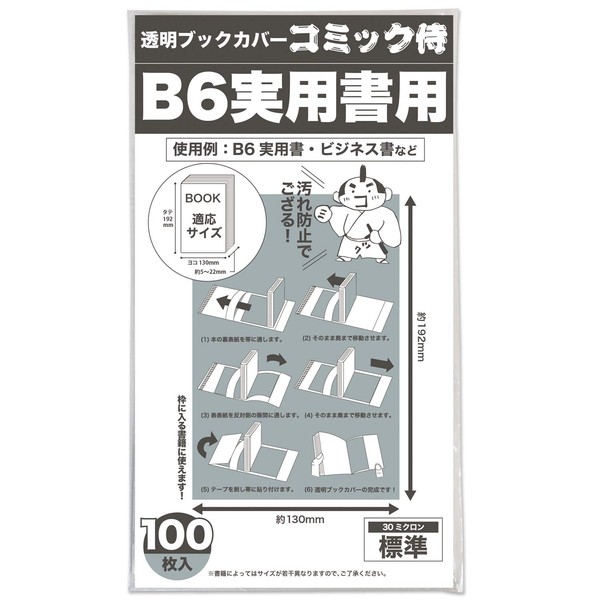 Comic Samurai, Transparent Book Cover, B6 Soft Cover for Practical Guides, Pack of 100, Made in Japan