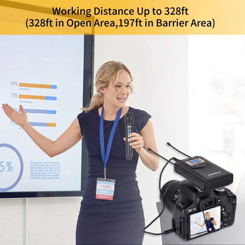 - 【Long Working Distance】The working distance of COMICA CVM-WM100 PLUS HTX is up to 328 Foots(Open Area 328ft, 196ft in area with obstacle) ,ideal to capture the audio in large scene.