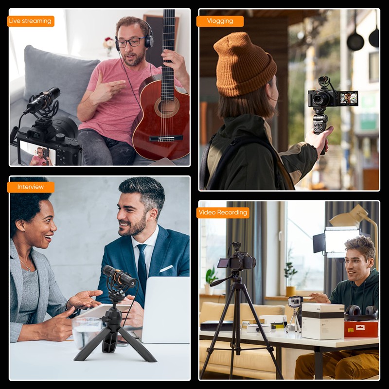 - Super Cardioid Pattern & Professional Shock-mount: Comica VM10 Pro shotgun microphone comes with a super cardioid directional pattern, providing excellent off-axis rejection for desired sounds. It's also equipped with a professional shock mount that effectively reduces noise caused by equipment vibration, ensuring pure sound quality and making your videos sound more professional.