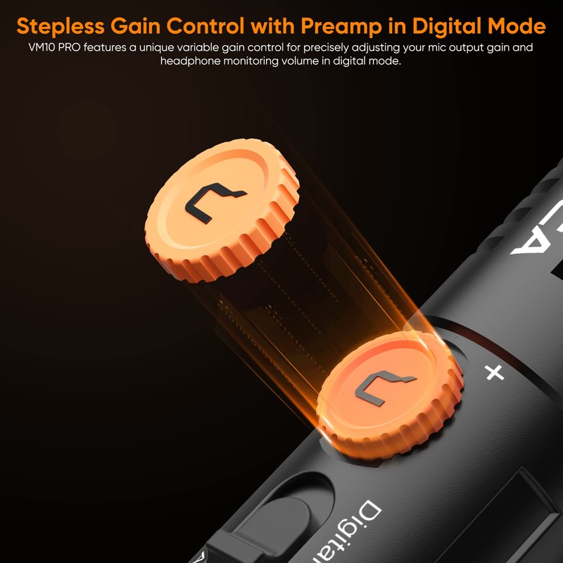 - Stepless Gain Control: VM10 PRO camera microphone supports stepless gain control with a preamp in digital mode, allowing you to adjust the volume freely to meet your shooting needs. It's easy to operate and convenient to use, giving you complete control over your audio.