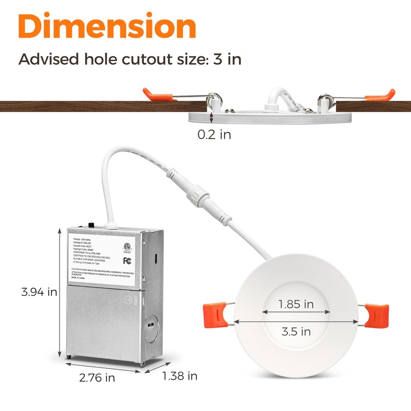 - 5 Color Temperatures Selectable: 3" recessed light with night light lets you choose from 2700K, 3000K, 3500K, 4000K, or 5000K before installation to match your room’s style and lighting needs—from soft and warm to bright and energizing