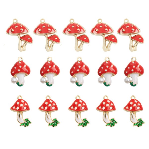 Comimark 15 PCS Enamel Mushroom Charms Pendant for DIY Jewelry Making Accessories