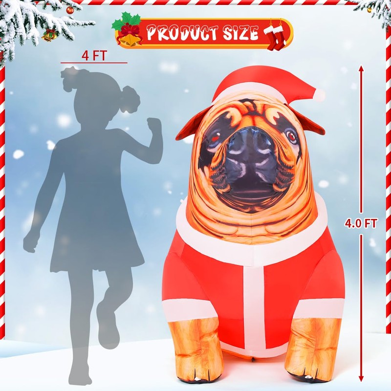 COMIN 4 FT Tall Christmas Inflatables Dog Outdoor Decorations Christmas Blow Up Bulldog Inflatable with Built-in LED Lights Yard Decoration for Holiday Indoor Lawn Garden