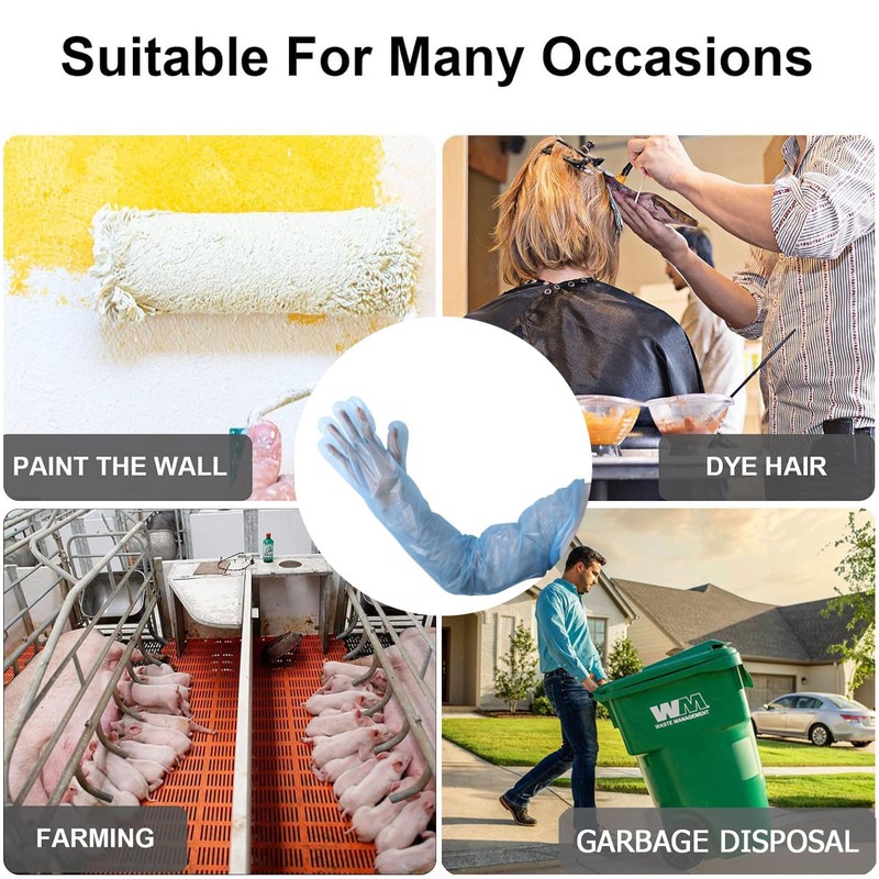 Protection: If you frequently use hands and arms at work and need to touch things, these long arm disposable gloves are best suited for you. Cover more and be safer. You don't have to worry about things on your arms that can get wet and messy.