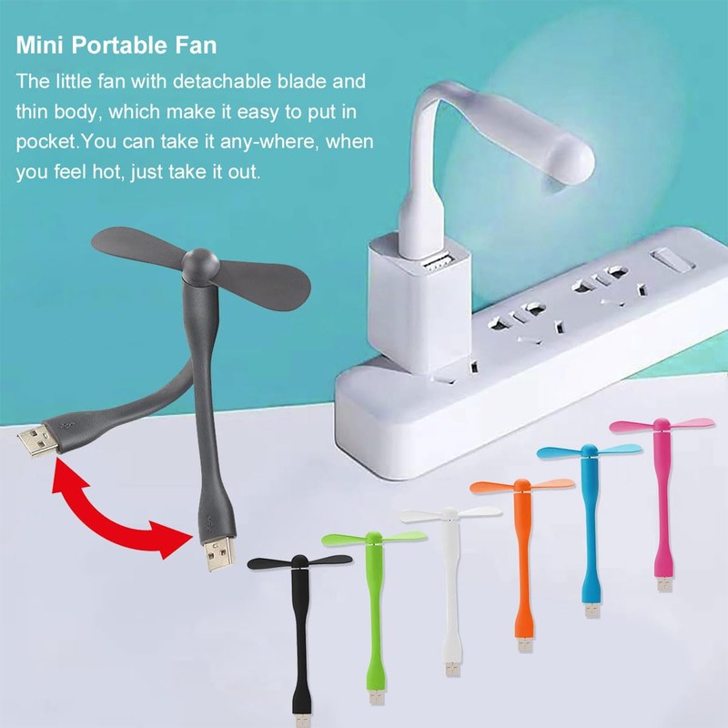 - USB fan: The mobile fan in white and black is connected directly to a USB port. The mini USB fan has very low power consumption and is ideal for laptops, power banks, etc.