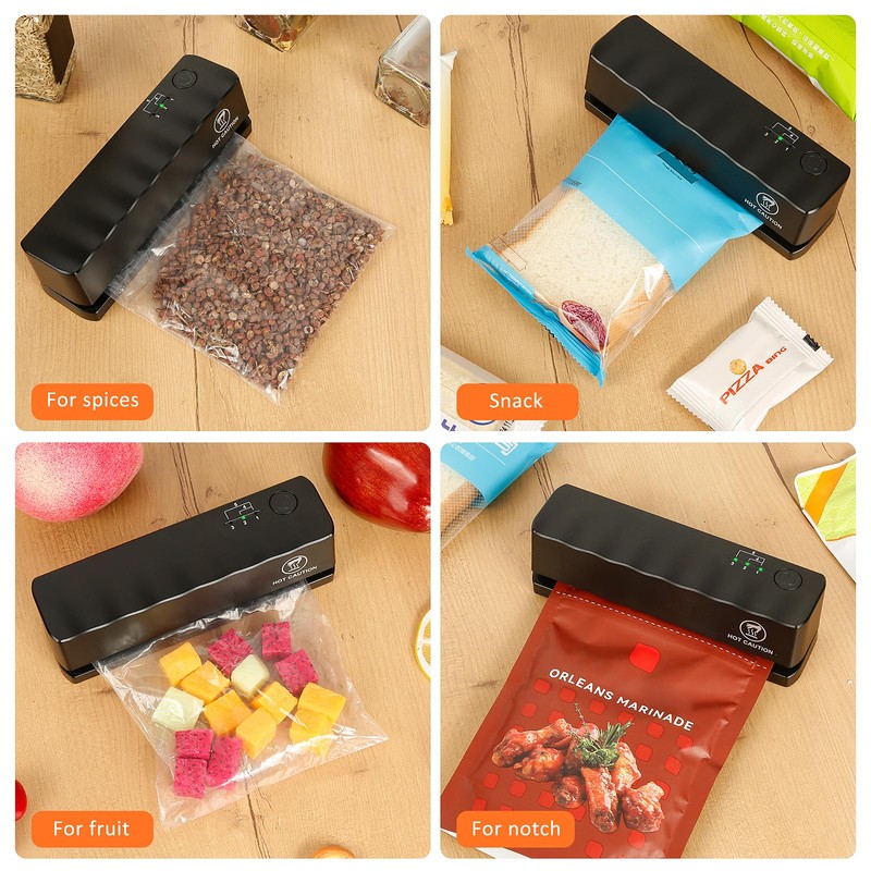 - Good sealing: mini film sealer ensures a good seal and the contents remain airtight and prevents it from being stale, keeping your food clean and fresh. This keeps vegetables, fruits and cereals fresh for longer and chips, biscuits and chocolate stay crisp for longer. Reduces food waste and is more environmentally friendly, perfect for home kitchen/travel/camping/picnic or other outdoor activities.