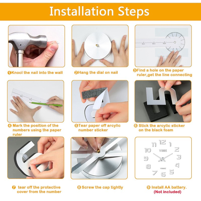 - Adjustable size: the DIY wall clock size depends on your preference to decorate the wall. With the frameless design, you can easily expand or reduce the diameter of the watch to adjust the different size wall.