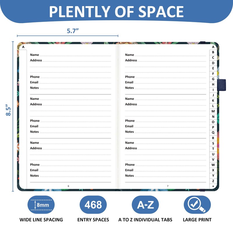 - Thoughtful Gift - This elegant address book is designed to organize all contact information, it makes an excellent gift for your friends and family. With large print and wide line spacing, our address books are ideal for senior parents to write and read.