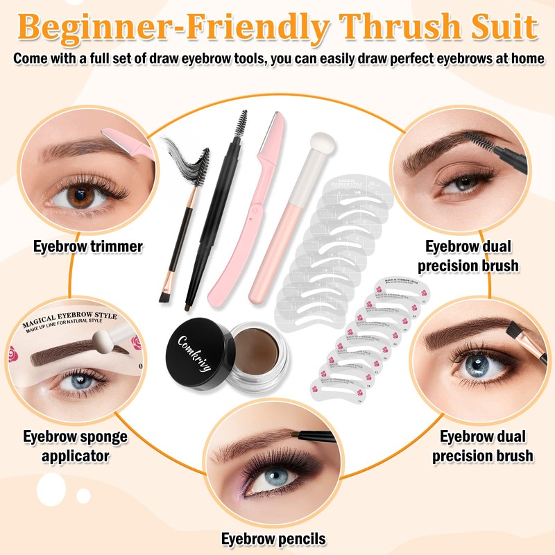 - 【Beginner-Friendly Eyebrow Stamp Stencil Kit】:For beginners, the Comkrivy eyebrow stamp stencil kit is an excellent choice. It includes a full set of eyebrow drawing tools: eyebrow pomade, 48pcs eyebrow stencils, eyebrow trimmer, eyebrow sponge applicator, eyebrow pencils, and eyebrow dual precision brush. So that every woman can easily do eyebrow painting at home.