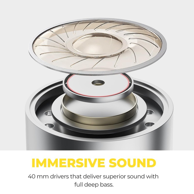 - Hi-Fi Audio: Hear premium sound with deep and full bass via 40mm drivers of the bluetooth over the ear headphones. Reproduce thumping bass and crisp treble that extends up to 20kHz for improved clarity. Elevate your sound quality for the greatest headphone experience.
