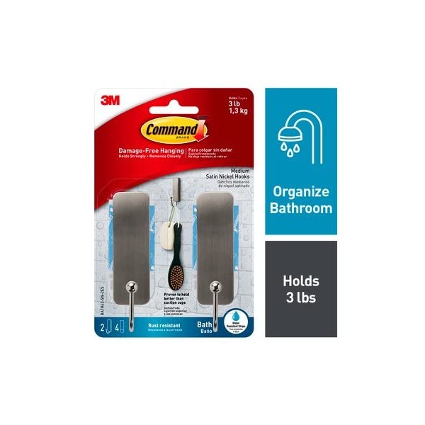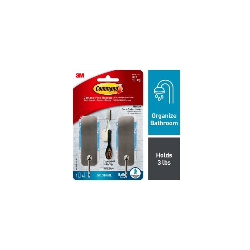 Command™ Bath Medium Hooks, Matte Black, BATH43-MB-2ES
