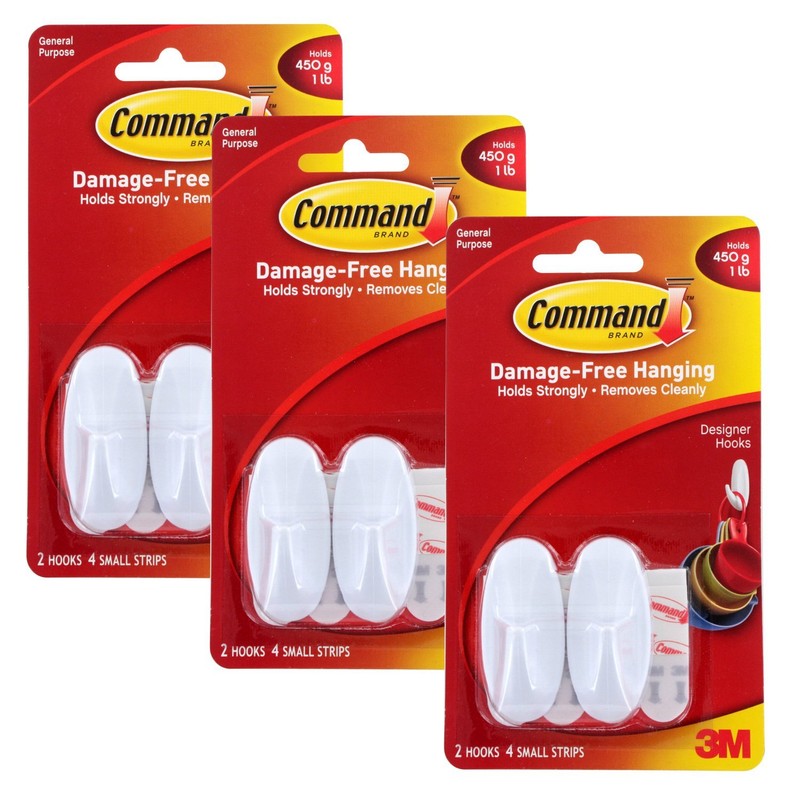 Command Designer Small Hooks, White, 1lb Capacity by Command