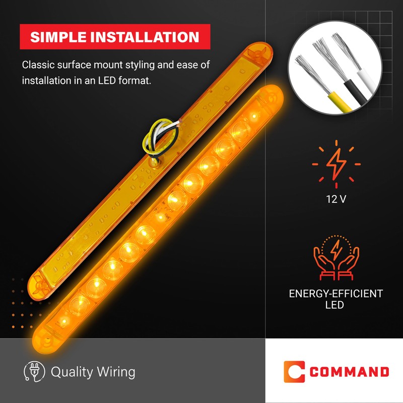 Command Electronics 12V LED Surface Mount Clearance, Turn, Tail Light – OEM RV, Truck, & Trailer Hot Line Utility Light – Sealed Polycarbonate Lens – CSA Certified for the US and Canada – Amber 1 Pack