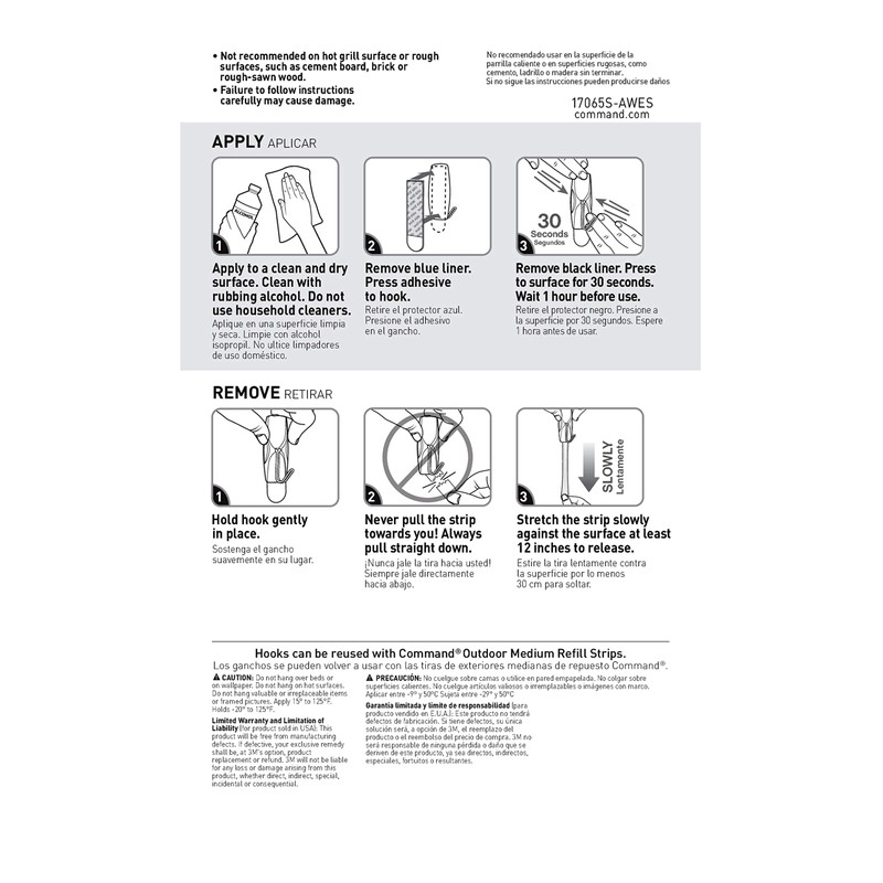 Command Outdoor BlackStainless Steel Wire Hooks, 17065AW, 2 Hooks, 3 Stripsy