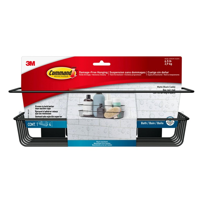 Command Shower Caddy Matte Black with Water Resistant Command Strips, Bathroom Organizer, Holds up to 6.5 lbs, 1 Count (Pack of 1)
