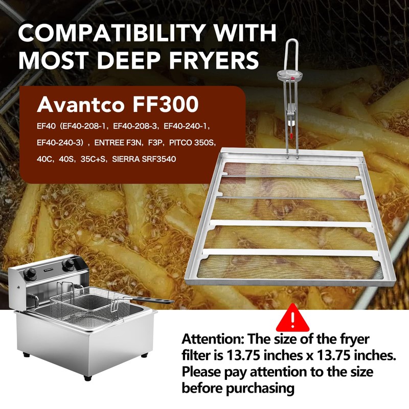 - 【 Wide Compatibility 】 Perfectly compatible with multiple brands of commercial furnaces: designed specifically for Avantco FF300 (liquefied gas/natural gas), EF40 full series (EF40-208-1/3, EF40-240-1/3), Entree F3N/F3P, Pitco 350S/40C/40S/35C+S, Sierra SRF3540 and other models. Please check the size (13.75 "x 13.75") before purchasing.
