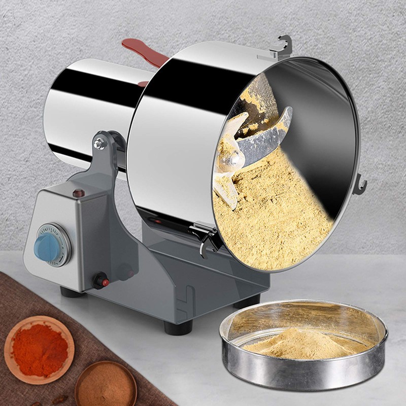 Commercial Electric Grinder, 2000g Electric Herb Grain Spice Grinder Stainless Steel Grinding Machine 270° Swing Type Power Mill Grinder 60-350 Mesh