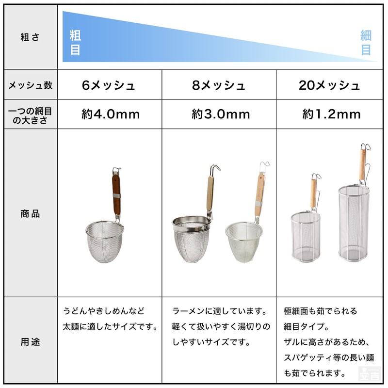 - The KIPROSTAR pasta leverage is made of 20 mesh, and is also compatible with thin noodles. In addition, it is made of 18-8 stainless steel, so it is highly resistant to corrosion, and it can be used safely on pastas with high salt. In addition to long pasta representative of spaghetti and fitchine, it is also perfect for short pasta like macaroni, penne, and shell. The strainer portion is available in 2 sizes so please choose according to the length of the noodle. Of course, it can also be used for frying noodles such as soba noodles, ramen, and noodles