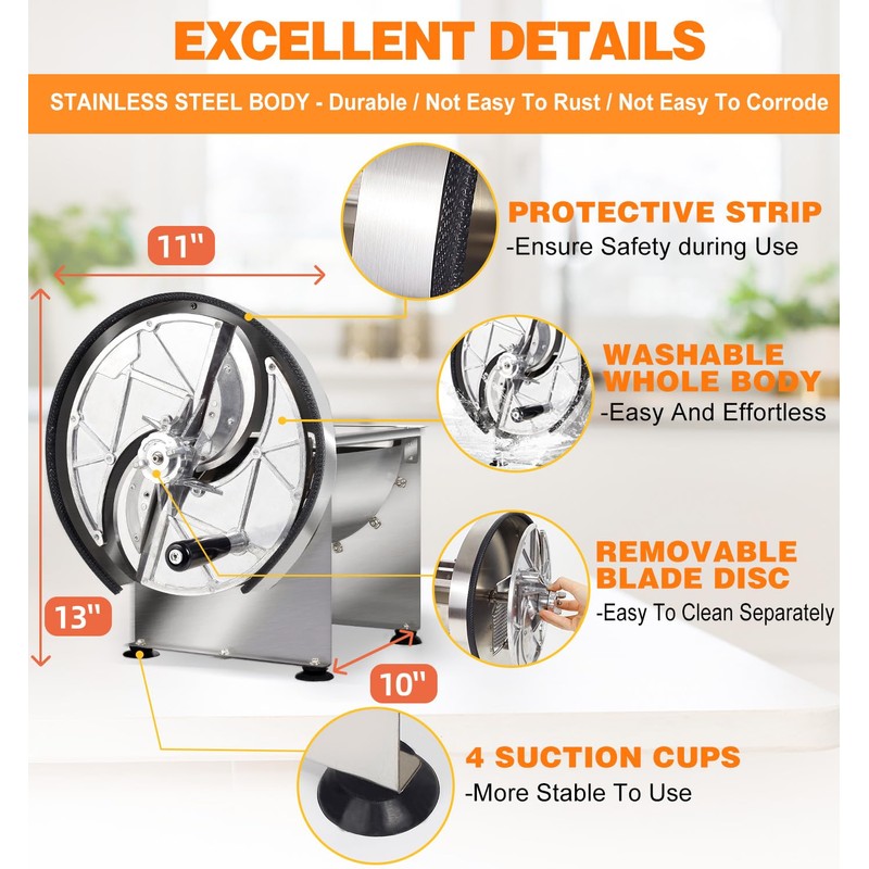 - High-Quality Materials - This slicer is made from stainless steel, ensuring durability for prolonged use. The easy detachable design makes cleaning simple, allowing for quick and thorough cleaning.