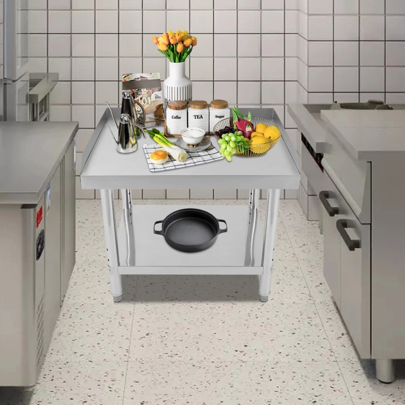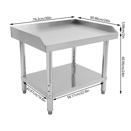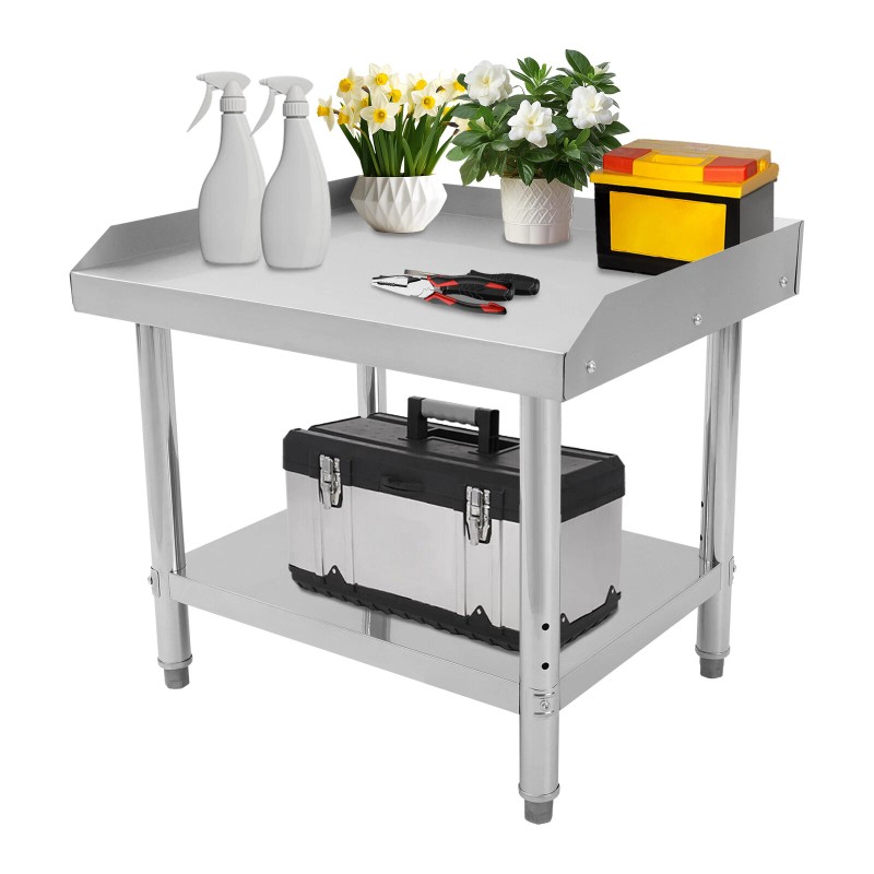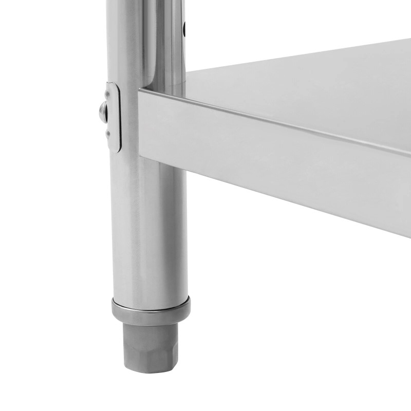 This adjustable work table will provide extra storage space and work surface for your kitchen, garage, workroom, etc., adding more convenience to your work. It is made of high-quality stainless steel with solid construction and adjustable feet, which can ensure the stability of your work and storage items. In addition, the large countertop surface and lower shelf allow you to store more items, avoiding a cluttered working environment.