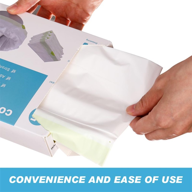 - Drawing Rope Design: The commode liner bag is a drawstring design that can be easily tied by simply pulling the drawstrings on each end.