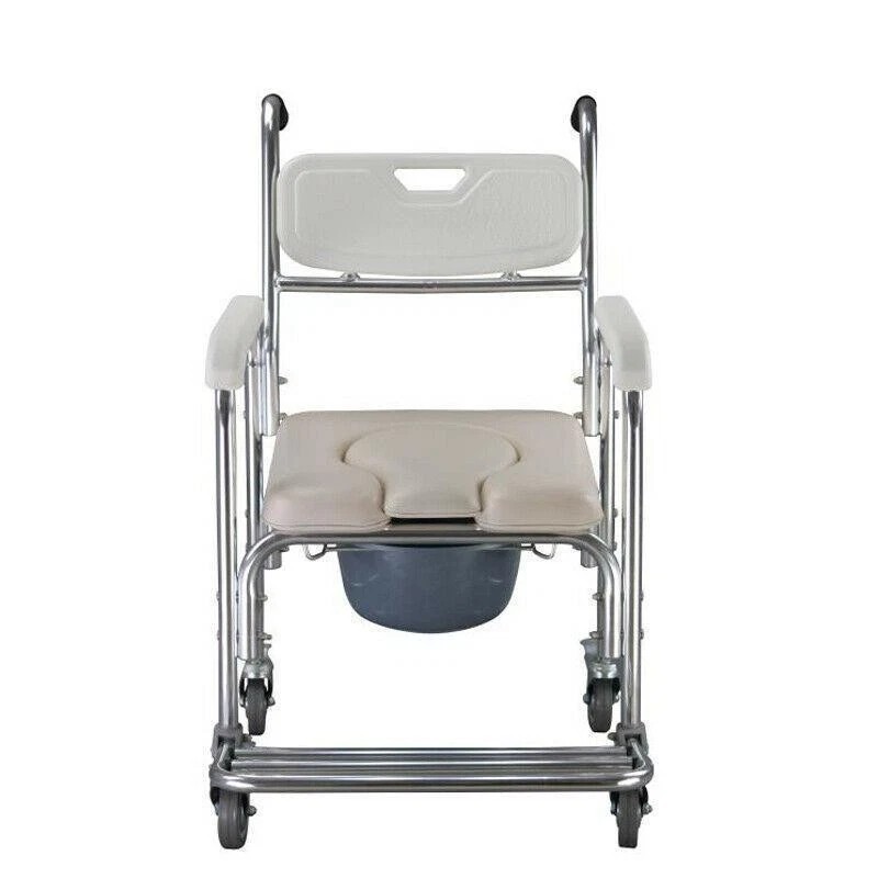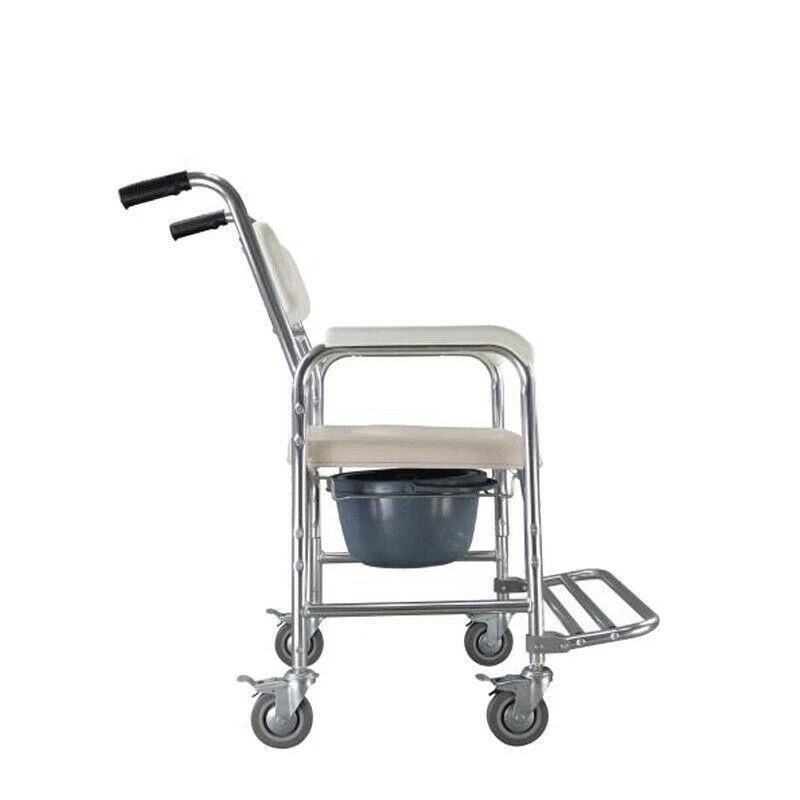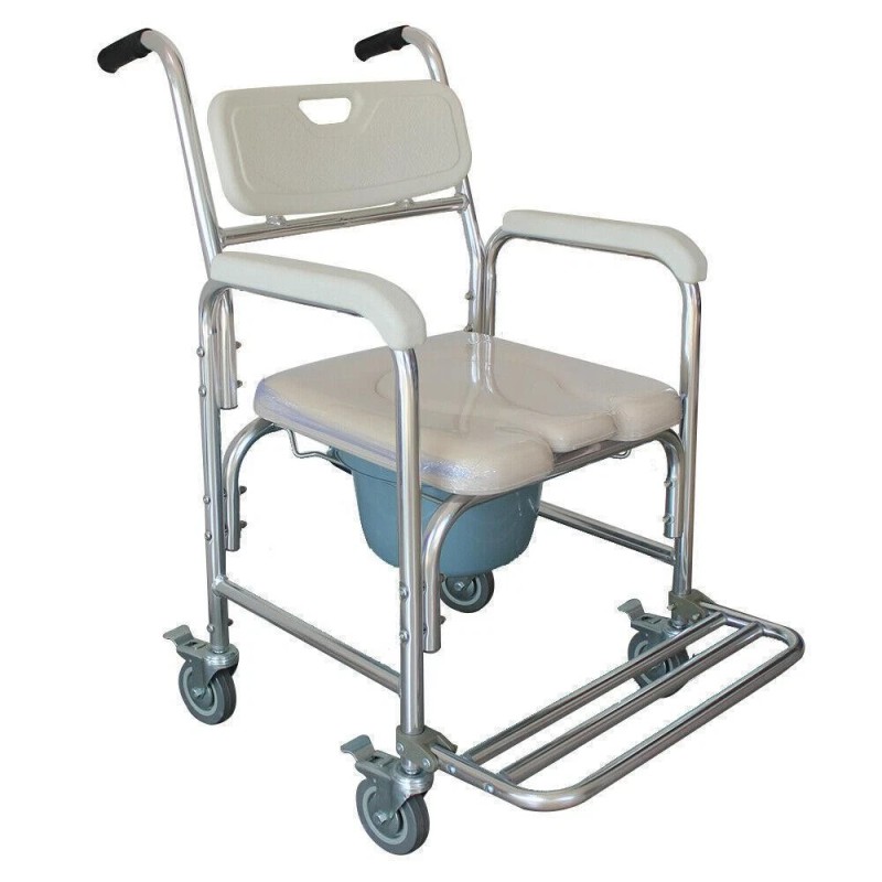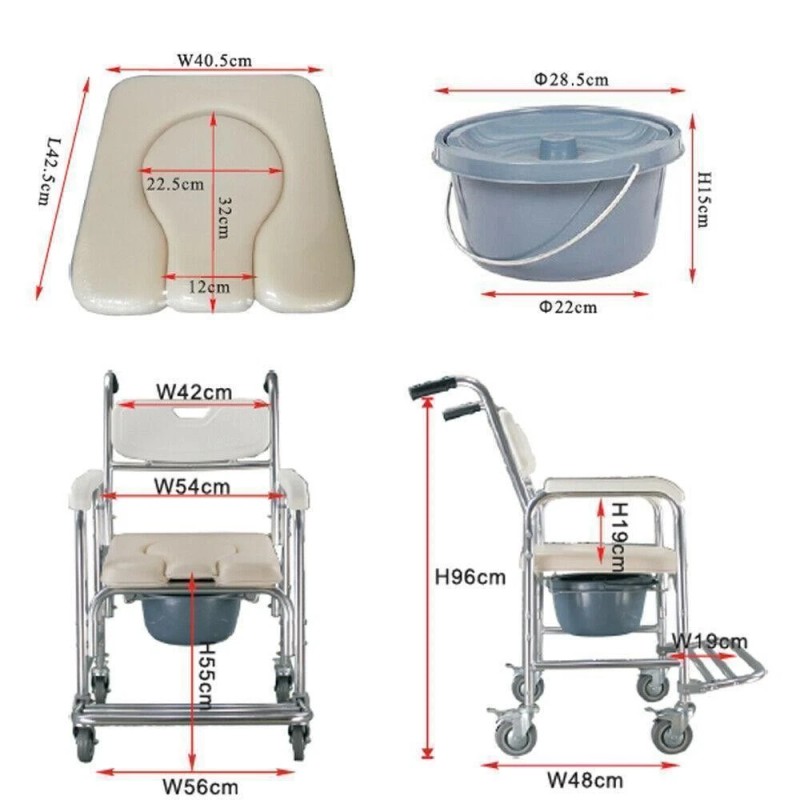 Commode Mobile Toilet Aluminium Wheelchair with Detachable Bucket for Bedside