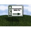 Community BBQ Pit Open Right Arrow Green Single Sided 18x24 in Yard Road Sign w/Stand