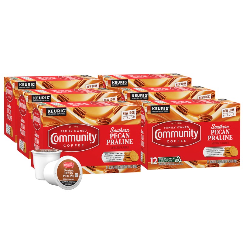 Community Coffee Southern Pecan Praline Flavored 72 Count Keurig K-Cup Coffee Pods, Medium Roast, 12 Count (Pack of 6)