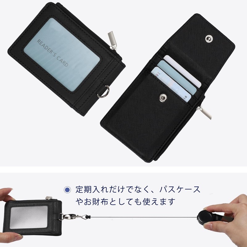 Commuter Pass Case, IC Card Case, Coin Pocket, 4-Card Holder, Double-Sided, Unisex