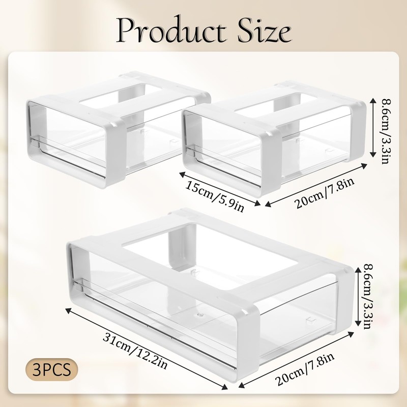 COMNICO 3 Pcs Under Desk Drawer Organizer, Table Hidden Slide Out Desk Drawers Clear Mounted Desktop Pencil Holder 2 Sizes Drawer Divider for Home Office Kitchen Bedroom