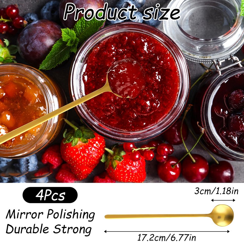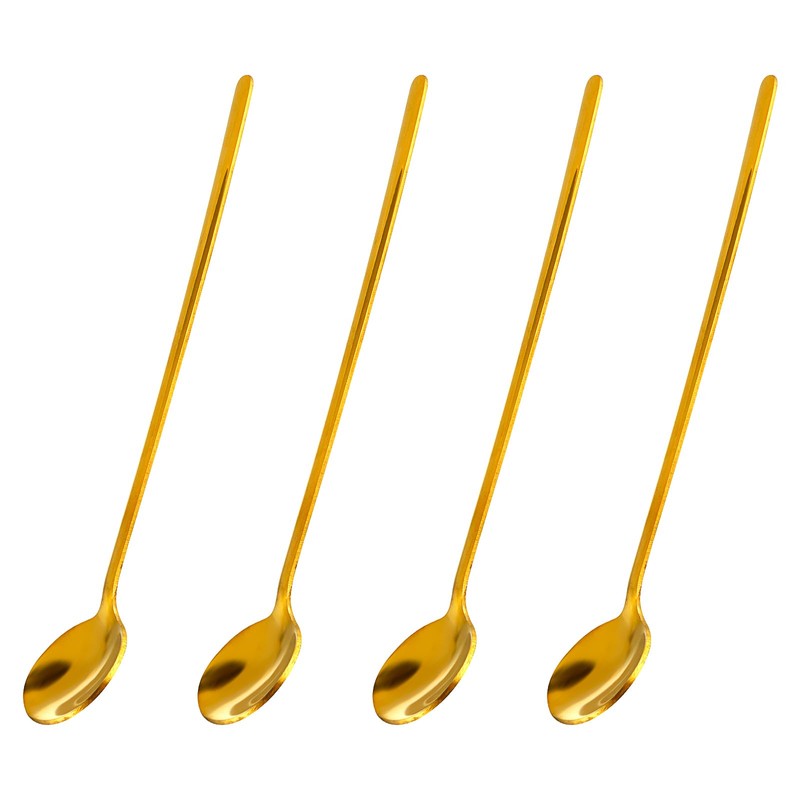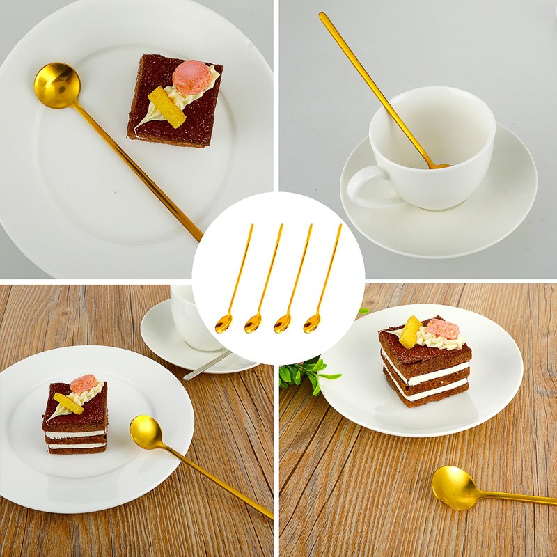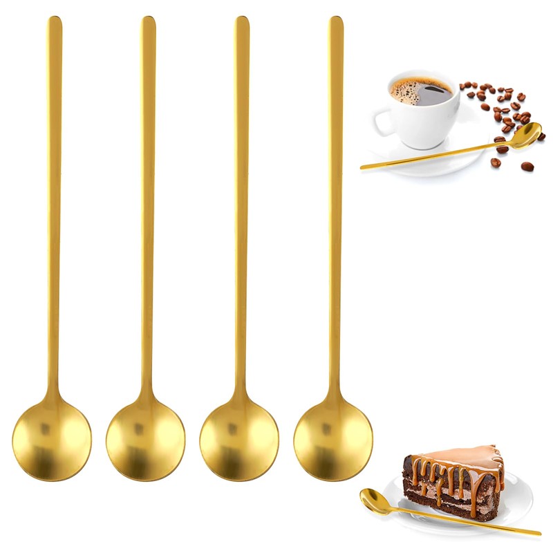 - 【Product Size】Dinnerware accessories contains 4 gold-plated stainless steel coffee spoons, each serving spoons 17.2cm/6.7inches long and 3cm/1.3inches wide. Extended handles keep coffee bar organizer from falling into deeper cups or utensils making coffee station organizer easier to use