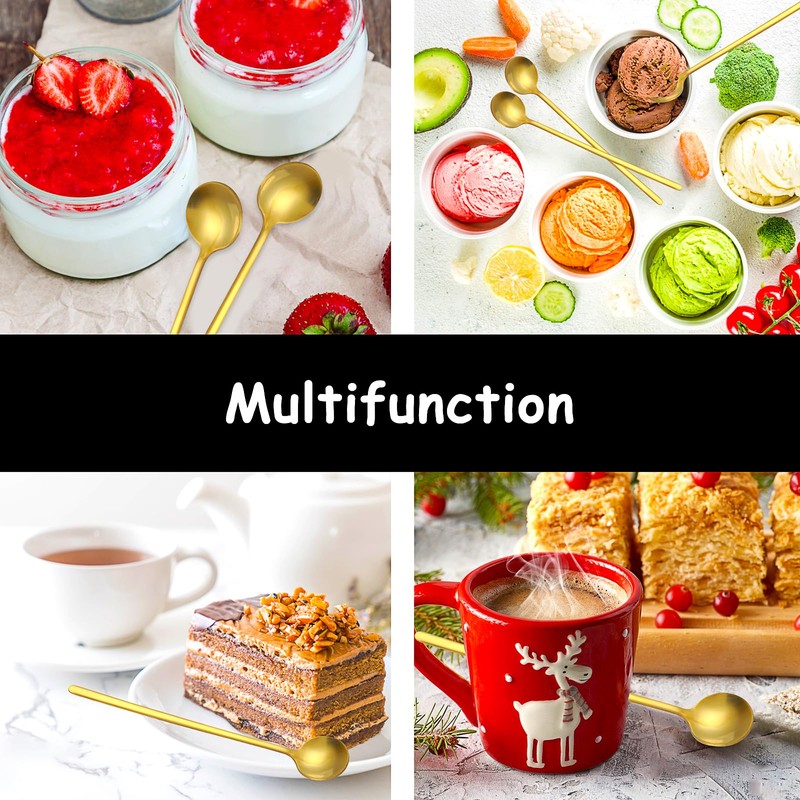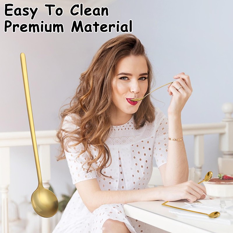 This coffee spoon set is perfect for stirring lemonade, coffee, iced tea, milkshakes, espresso, desserts, creams, cocktails, ice cream, caviar and more. Suitable for home, coffee shop and tea house use. The spoon won't hurt your hands and mouth