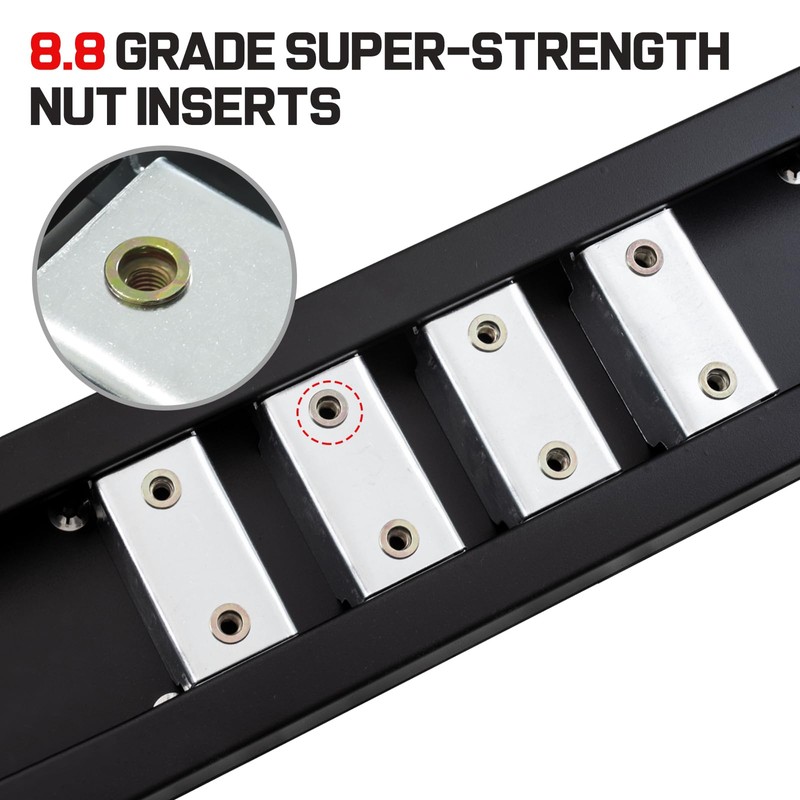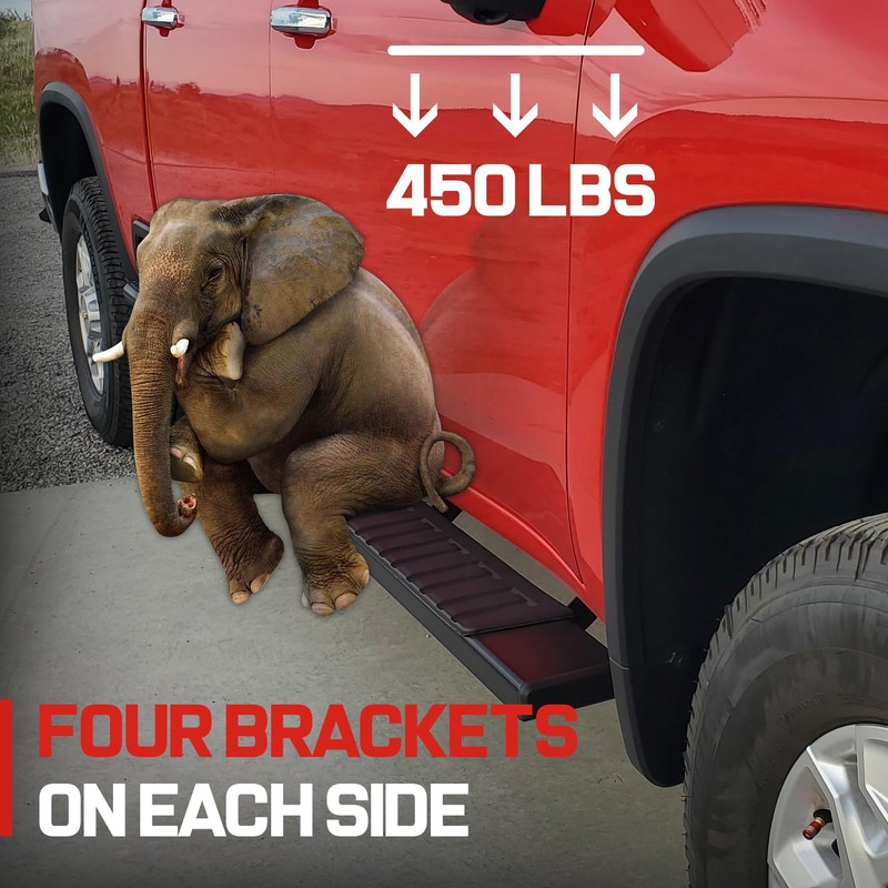 • EASY TO INSTALL: Easy Bolt-on Installation. No Drilling Or Cutting Required. All Mounting Hardware And Installation Instructions Included. Mount The Mounting Brackets Under The Truck First Then The Running Boards. The Attaching Bolts Fit Into A Groove That Allows Them To Slide To The Proper Spot Then Torque Them Down And That's It.