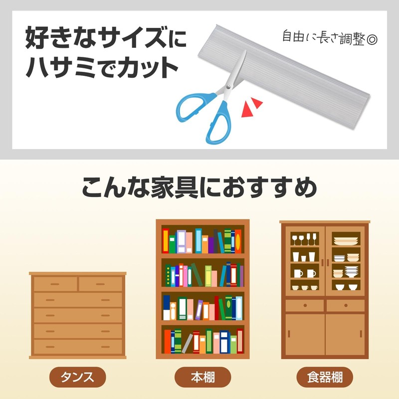 Como Life Furniture Fall Prevention Plate, 8.9 inches (22.5 cm), Set of 4, Furniture Fall Prevention, Board Shake, Earthquake Prevention, Clear, Cut, Easy to Lay, Easy to Conspicuous, Drawer,