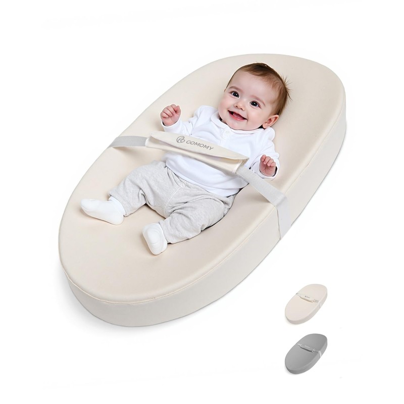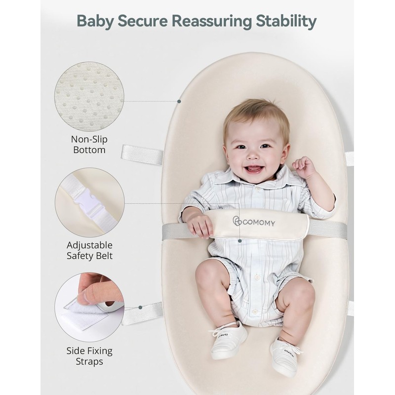COMOMY Baby Changing Pad with Wipeable & Waterproof PU Cover, Contoured Diaper Changing Pad for Dresser with Non-Slip Safety Belt, Portable and Lightweight, Large Cushioned Foam, Beige