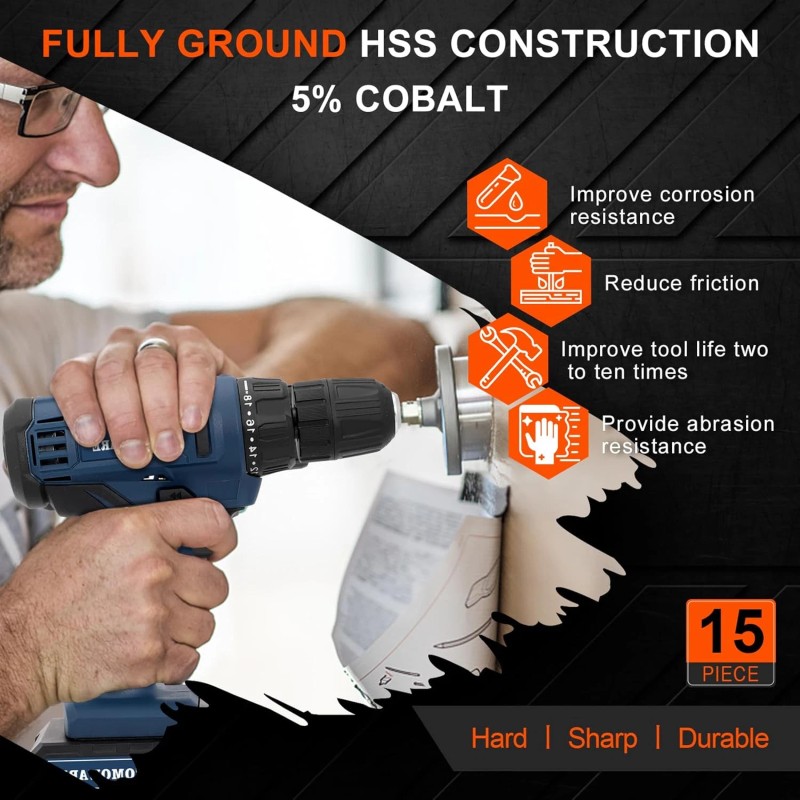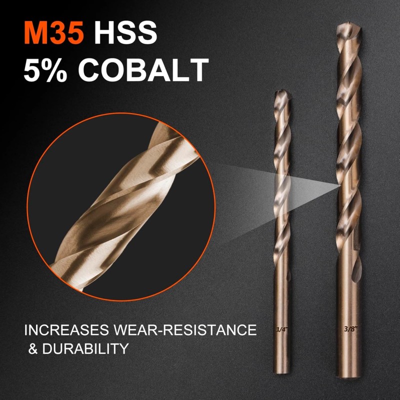 - HIGH QUALITY MATERIAL: 5% Cobalt High Speed Steel M35 provide extended tool life compared to ordinary drill bits. Durable and strong