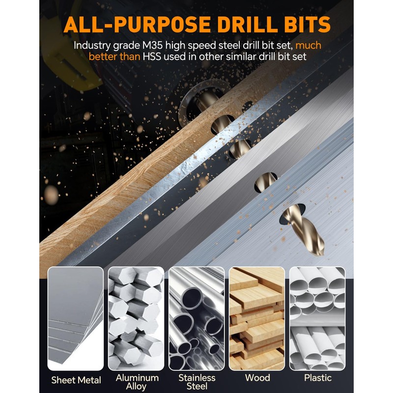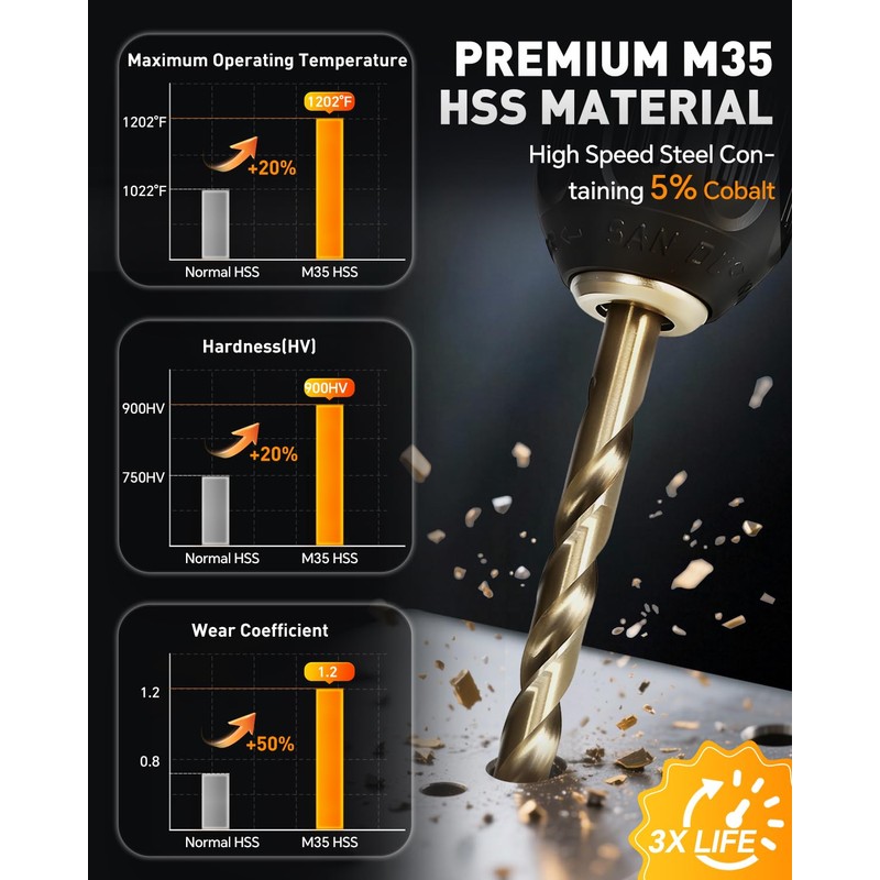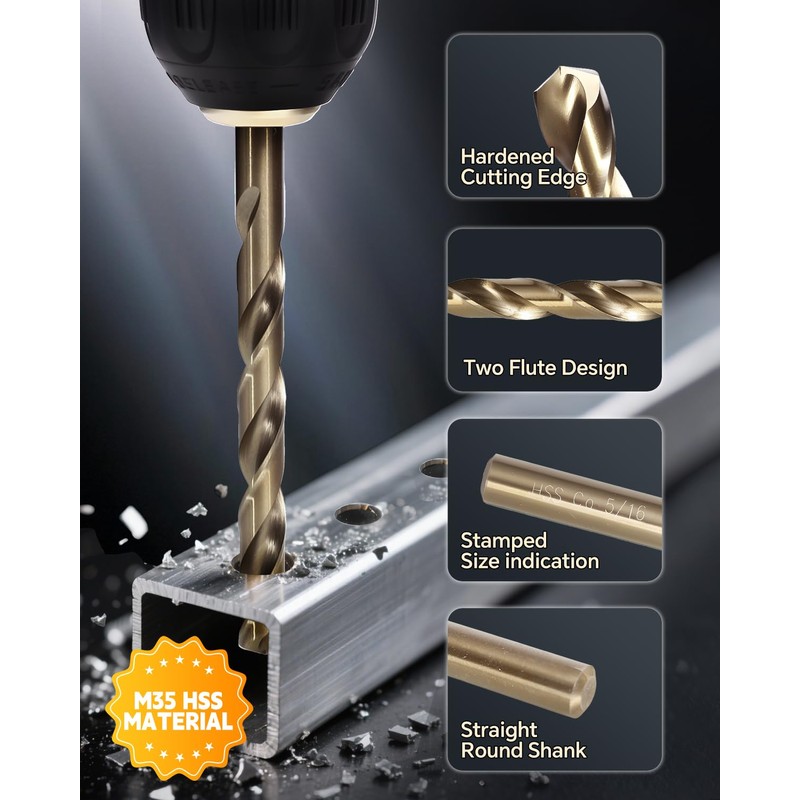 • HIGH QUALITY MATERIAL: 5% Cobalt High Speed Steel M35 provide extended tool life compared to ordinary drill bits. Durable and strong