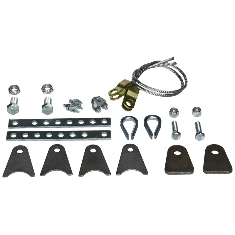 - Front End Travel Limiter, Cable Style Designed to fit both A-arm and strut front suspensions 7-position adjuster for fast, between round changes Adjuster enables you to fine tune front-end separation, improving 60 foot times as well as vehicle reaction time Kit includes weld-on mounting tabs, cable assemblies, mounting hardware and detailed instructions Limits front suspension separation on launch Welding required