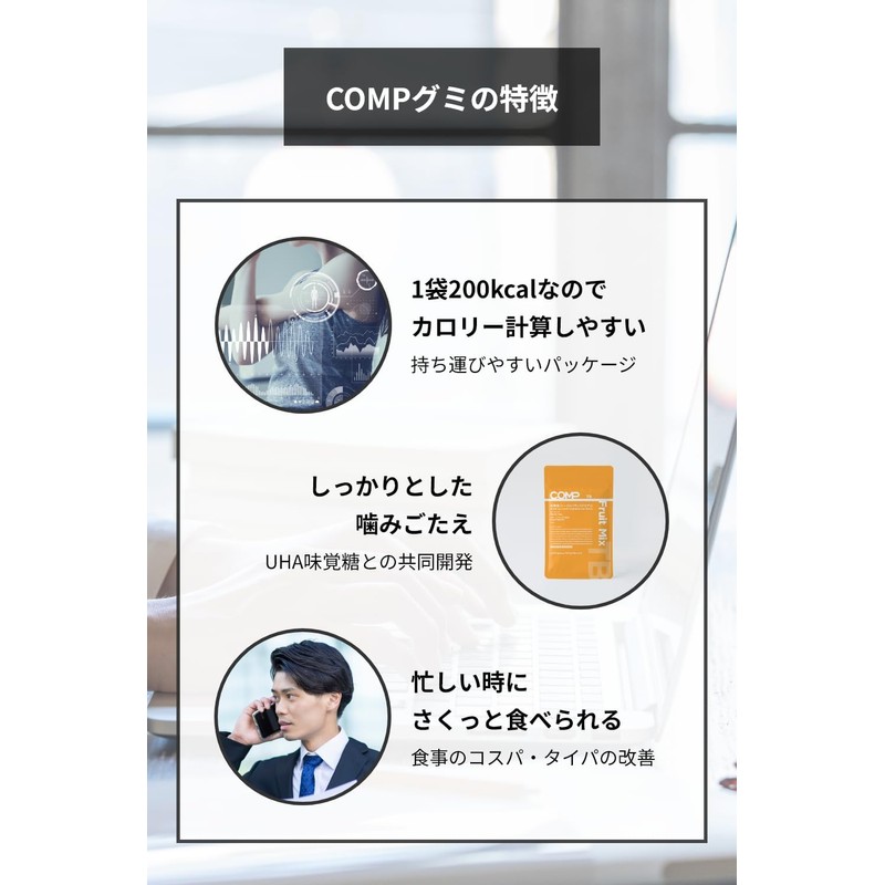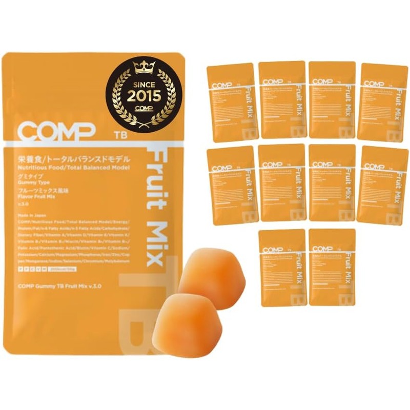 - [Product Introduction - Nutritional Balance] Founded in 2015, COMP is a complete food and nutritional food brand from Japan. This gummy type, Total Balanced Model (TB), is a mixed fruit flavor. Developed in collaboration with UHA Mikakuto. Based on the Ministry of Health, Labor and Welfare's "Dietary Reference Intakes for Japanese (2020 Edition)", it contains a good balance of the three major nutrients (protein, fat, carbohydrates), vitamins and minerals. COMP is in your pocket, allowing you to take in nutrition anytime, anywhere, at any time you like.