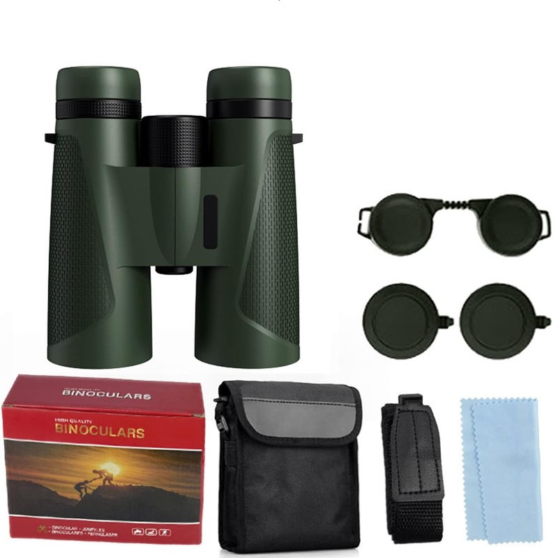 Compact Binoculars for Adults Large Eyepiece Waterproof for Bird Watching High Powered Easy Focus Binoculars with Low Light Vision for Outdoor Hunting Travel (12×42HD Army Green)