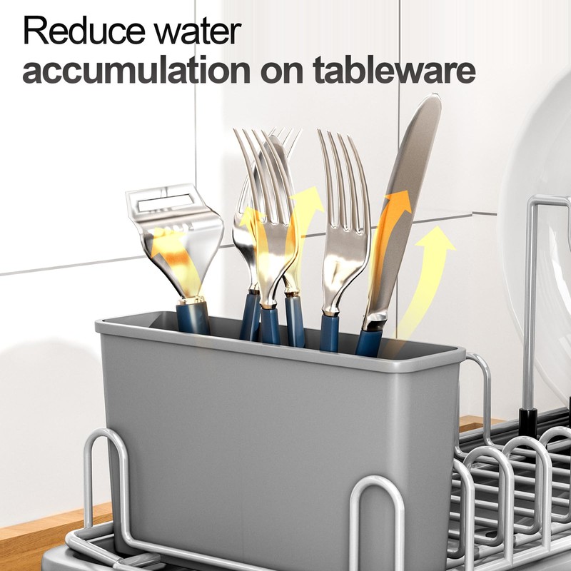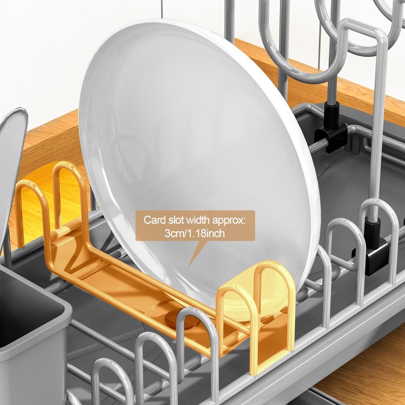 - Multi-Functional Drying Solution – Our sink side dish drainer designed to hold plates, bowls, pot lids, cups, and more, this kitchen countertop dish drainer features 10 slots for various dishware. A detachable cutlery holder helps organize forks, knives, and spoons for efficient drying.