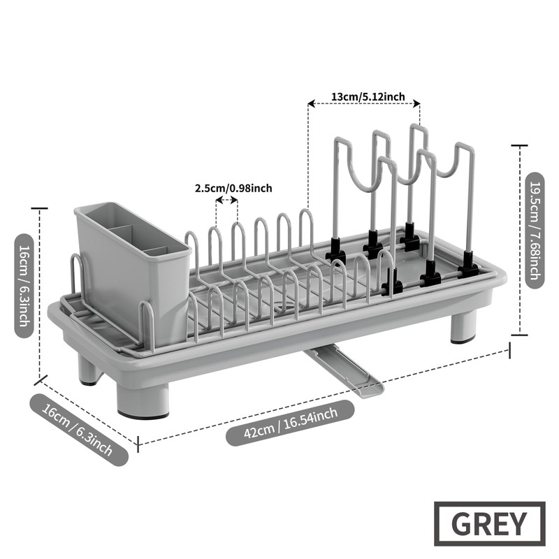 - Compact & Space-Saving – Our dish drying rack Measuring only 16.5"L x 6.5"W x 7.9"H, this mini dish rack is perfect for tight kitchen spaces, studio apartments, RVs, or for single-person households. Keep your counter clean and organized without bulk.