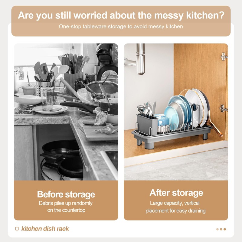- Quick Setup & Easy Maintenance – small dish rack for kitchen counter no tools or screws needed for assembly. The small dish rack, removable utensil holder, and drainboard can all be easily disassembled for thorough cleaning. A simple yet effective solution for your daily dish drying needs.