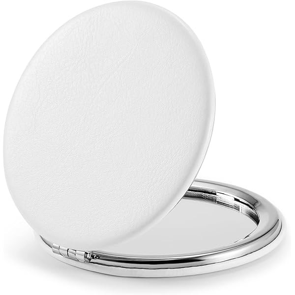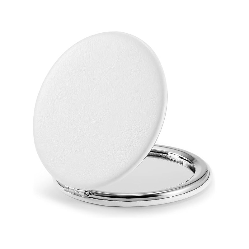 Compact Mirror,Double-Sided Makeup Small Mirror for Purse with 1X/3X Magnification PU Leather (White, 2.8")