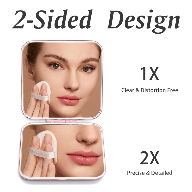 - 1X & 2X Magnification - This folding makeup mirror features a 1X magnification mirror on one side and a 2X magnification mirror on the other-11.