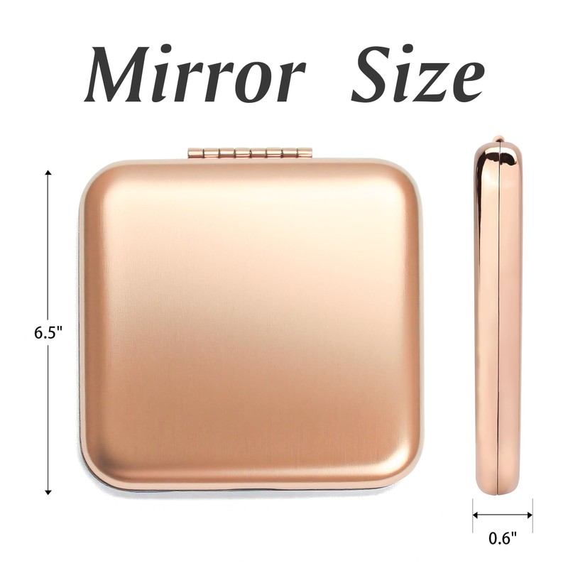 Compact Mirror for Purse, Metal Square Shell, Double-Sided 1X/2X Magnifying, Portable Travel Makeup Mirror, Mini Pocket Mirror, Rose Glod, 4 Packs