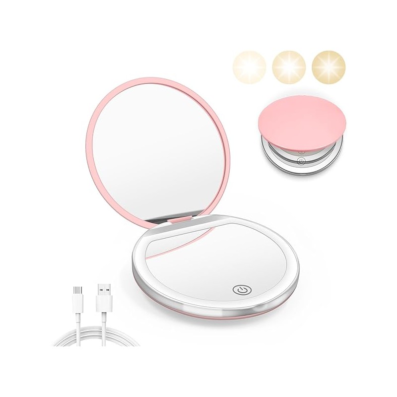 Compact Mirror with Light, 1X/3X Magnification LED Pocket Mirror with USB Data Cable,Mini Mirror for Purse, Pocket,Travel and Present (Pink)